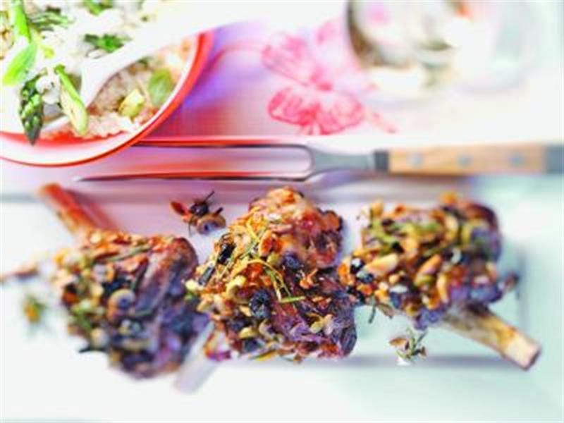 Lammhaxen mit einer Oliven-Mandel-Mischung und dazu Risotto mit grünem Sparel die Liebhaber von Lammfleisch werden begeistert sein. - © Neuseelandlamm