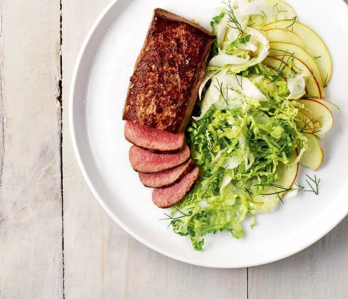 Lammlendenfilets mit Salsa Verde und fruchtig-frischem Fenchel-Apfel-Salat sind ein leichter und gesunder Leckerbissen. In diesem Rezept stammt das Fleisch aus neuseeländischer Weidehaltung – ein Garant für besonders zartes und mageres Fleisch von feinem Geschmack.