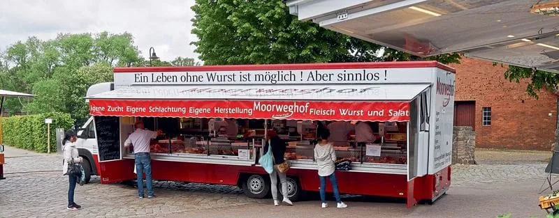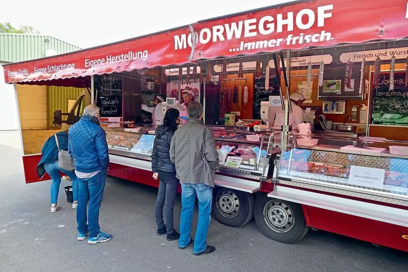 „Ein Leben ohne Fleisch ist zwar möglich, aber sinnlos“, prangt als Werbespruch über dem mobilen Verkaufswagen der Schlachterei Moorweghof. Der Familienbetrieb um Seniorchef Carsten Dreßler macht einiges ein Stück weit anders als die Konkurrenz. Der Erfolg und der Zuspruch der Kunden geben ihm Recht.