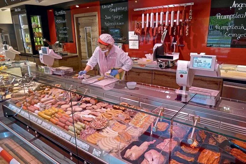 Erst 2013 wurde in das Ladengeschäft im rund 20 km entfernten Heidenau investiert, der Ladenbauer Schrutka- Peukert hat das Konzept umgesetzt. Auch hier gibt es im Gegensatz zu vielen älteren oder auch modernisierten Fleischerläden im Umkreis Besonderheiten. „Geld ist wohl das Schmutzigste beim Einzelhandel, weil es durch viele Hände geht“, zeigt Dressler auf einen roten Automaten, der am Ausgang des Ladens positioniert ist. Das etwa 25.000 Euro teure Gerät sorge dafür, dass der Bezahlvorgang kontaktlos erfolge, erklärt der Chef. Ausgetauscht wird lediglich der Barcode auf dem Beleg der eingekauften Ware. Dieser Bon werde per Chiffriercode eingescannt. Bezahlt wird ausschließlich am Automaten, entweder per Girokarte oder auch mit Geldscheinen oder Münzen.