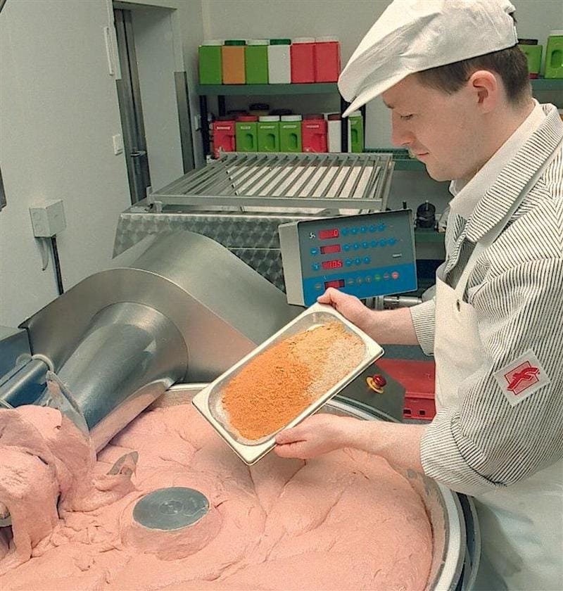 Wer alle Zutaten - Nitritpökelsalz, Kutterhilfsmittel, Gewürze und Umrötehilfsmittel - in einer Schüssel abwiegt und vor dem Kuttern mischt, riskiert, dass die Zutaten schon reagieren, bevor sie in die Wurst kommen. Das Stickoxid bildet sich und entweicht. So kommt es nicht selten vor, dass kaum noch Nitrit in der Mischung vorhanden ist und die Wurst nicht mehr umröten kann.