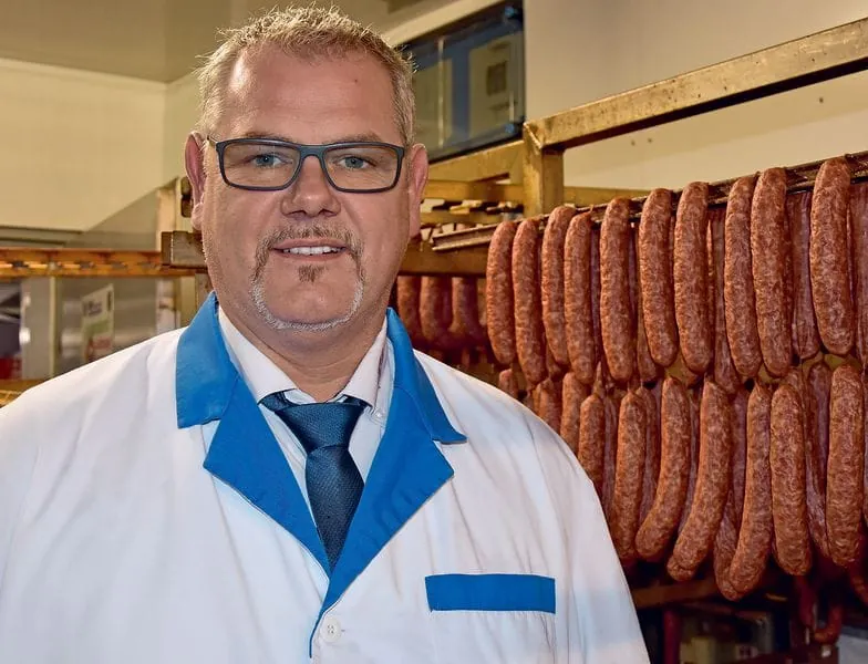 Niko Brand, Geschäftsführer von Brand Qualitätsfleisch, hat ­direkt nach der Schlachtung die hohe Fleischqualität der ­Duroc-IMF-Schweine festgestellt. Brand Qualitätsfleisch