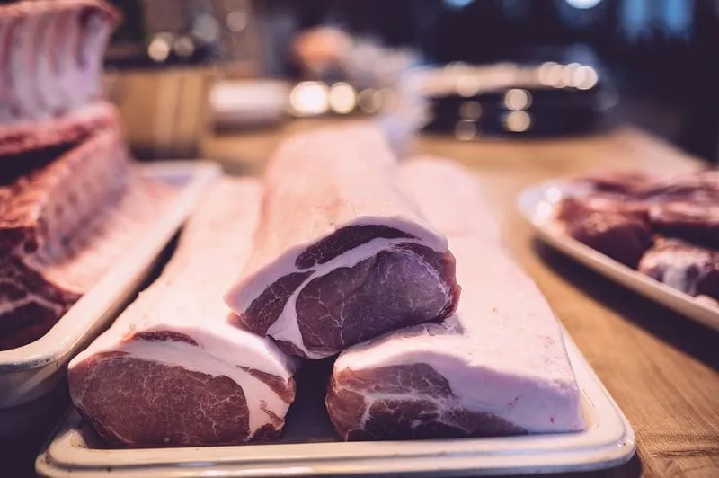 Durch den hohen Anteil an intramuskulärem Fett weist das Fleisch vom Schwein Duroc IMF eine Marmorierung auf. Topigs Norsvin