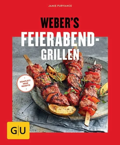 Schnelle, unkomplizierte, aber trotzdem ausgefallene Rezepte bietet Grillprofi Jamie Purviance in „Weber‘s Feier­abend-Grillen“ (ISBN ISBN 978-3-8338-6538-1, 9,99 Euro). Elektro- und Gasgrills kommen in Minutenschnelle auf Betriebstemperatur – da bleibt gerade genug Zeit, das Fleisch zu würzen und die Beilagen zu schnippeln. Mit den Rezepten dieses Buchs sind Köstlichkeiten wie Provenzalische Lammspieße oder Quesadillas mit Hähnchen ebenso schnell gezaubert wie Steaks, Garnelen, Pizza oder Burger – mal ganz klassisch, mal ausgefallen und exotisch. In weniger als 30 Minuten sind auch die Merguez-Bratwürste mit Pistazien-­Aïoli und Rucola fertig: