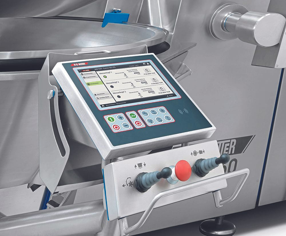 Das Schleifen der Kuttermesser ist also ein Arbeitsschritt, der in der täglichen Routine der Lebensmittelverarbeitung immer im Auge behalten werden muss. Für Kutter von K+G Wetter, Biedenkopf-Breidenstein, gibt es hierfür einen digitalen Assistenten: den neuen Messerschnittzähler CutCounter. Die optionale Funktion, ab dem Modell CutMix CM 50 erhältlich, behält die Anzahl an Schnitten, die mit einem Satz Messer ausgeführt wurden, exakt im Blick. Der Messerschnittzähler ist eine Option, die auf dem Touchpanel aktiviert wird. Er ist einfach nachrüst­bar und erfordert keine zusätzliche Software.