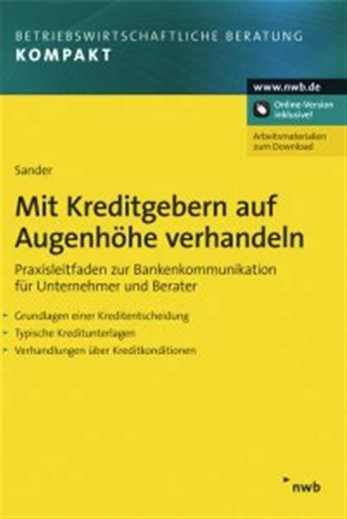 Der Autor kennt beide Seiten des Verhandlungstisches. Aus 20 Jahren Bankgeschäft, davon zuletzt neun Jahre als Vorstand der Volksbank Neuss eG, weiß Carl-Dietrich Sander, wie Banker denken und handeln. Seit 1998 ist er als Trainer, Berater und Fachautor für Unternehmer und seine Beraterkollegen aktiv. Daher weiß er um die Themen auf Seite der Kreditnehmer. Beide Sichtweisen bringt er in seinem Praxisleitfaden zusammen.„Mit Kreditgebern auf Augenhöhe verhandeln“ von Carl-Dietrich Sander ist im Januar 2012 erschienen, 368 Seiten, 34,80 Euro, ISBN 978-3-482-63691-2.