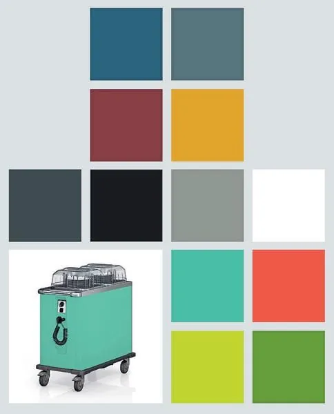 Mit neuen Farben wie „Merlot Red“, „Neomint“, „Sea blue“ oder „Petrol green“ kann man die flexiblen Kochstationen Blanco Cook gestalten, genauso wie die Speisenausgabe Basic Line, Servierwagen, Tablett-Abräumwagen, Spender und Speisenausgabewagen. Ton-in-Ton-Konzepte oder kontrastreiche Akzente lassen sich umsetzen.