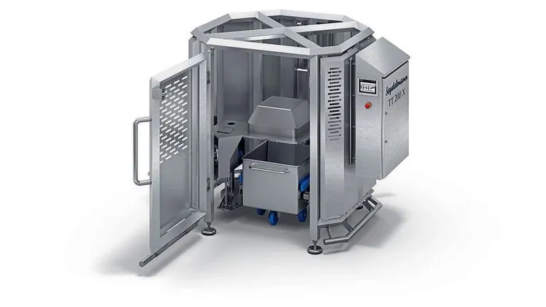 Die Maschinenfabrik Seydelmann, Stuttgart, hat hierfür den Normwagentumbler zum Tumbeln, Mischen und Marinieren entwickelt. Wie alle Seydelmann Maschinen erfüllt auch diese Neuheit die höchsten Anforderungen an das Hygenic Design.
