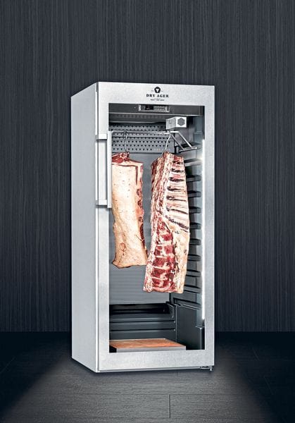 Die Reife- und Präsentationsschränke gibt es in zwei Größen, für bis zu 20 Kilogramm (Dry Ager DX 500 Premium) und bis zu 100 Kilogramm (DX 1000 Premium) Fassungsvermögen. Horst Buchmann, Kerstin Mock