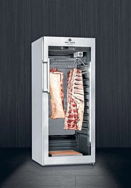 Seit fast acht Jahren lässt der Reife- und Präsentationsschrank Dry Ager von Landig + Lava, Bad Saulgau, kostbare Fleischteile unter klimatischen und hygienischen Idealbedingungen zu vollem Aroma entfalten. Mittlerweile präsentiert das Familienunternehmen die dritte Generation des Reifeschrankes. Die Reifeschrankmodelle DX 500 und DX 1000 haben ein optisches und technisches Update erhalten.