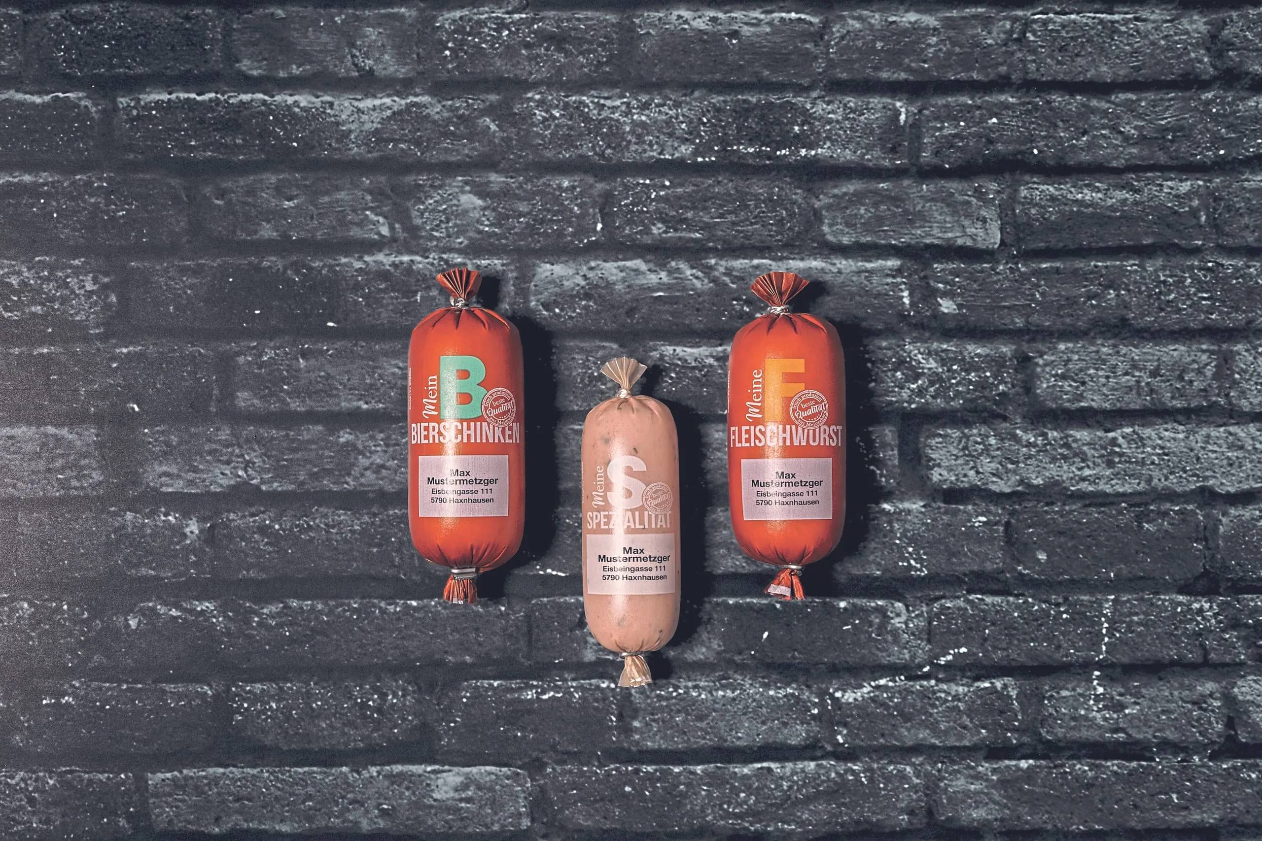 So können Handwerksbetriebe schon ab zehn Bund einen eigenen Wunschtext oder das eigene Logo eindrucken lassen. Zur Wahl stehen die gängigen Sorten Bierschinken, Fleisch-, Gelb- und Jagdwurst, Lyoner, Mettwurst, Mortadella sowie Schinkenwurst. Zusätzlich gibt es drei neutrale Wursthüllen mit der Bezeichnung „Meine Spezialität“. Damit lassen sich Hausspezialitäten und regionale Köstlichkeiten aufmerksamkeitsstark verpacken. Beim maßgeschneiderten Druck sagt der Kunde, wie die Wursthülle auszusehen hat. Schon ab 500 Metern Druck lassen sich individuelle Wursthüllen produzieren, gerafft oder abgebunden. Eigenes Design, Logo und Schriftzug sind in vielen Farben möglich.
