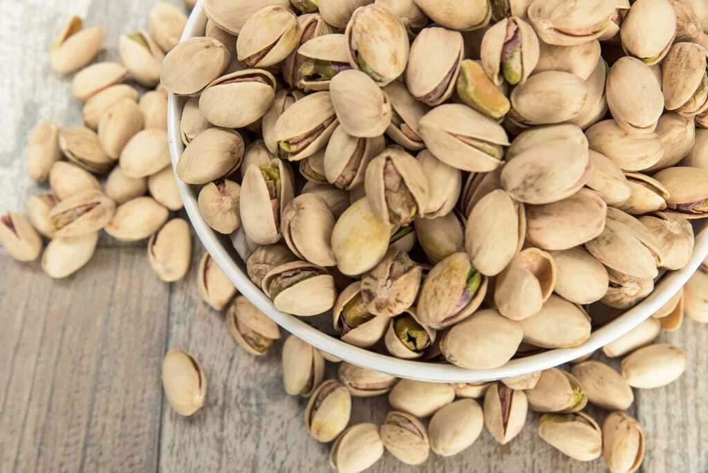 Ihren Ursprung haben Pistazien im Nahen Osten. Die ovalen und zugespitzten Steinfrüchte wachsen an einem bis zu 10 Meter hohen Baum. Unter der grünen fleischigen Hülle liegt der Steinkern mit seiner harten, hellen Schale. Da er bei der Reifung größer wird, platzt die Schale einseitig entlang der Mittelnaht auf. Im Innern steckt ein von einer rotbraunen Haut umgebener Samenkern. Je nach Sorte ist er gelblich bis grün gefärbt, wobei dunkelgrüne Kerne die höchste Qualität haben. Pistazien enthalten reichlich ungesättigte Fettsäuren (52 %) und weitere positive Inhaltsstoffe wie Vitamin E, Provitamin A, B-Vitamine, Kalium, Phosphor, Magnesium und Eisen.