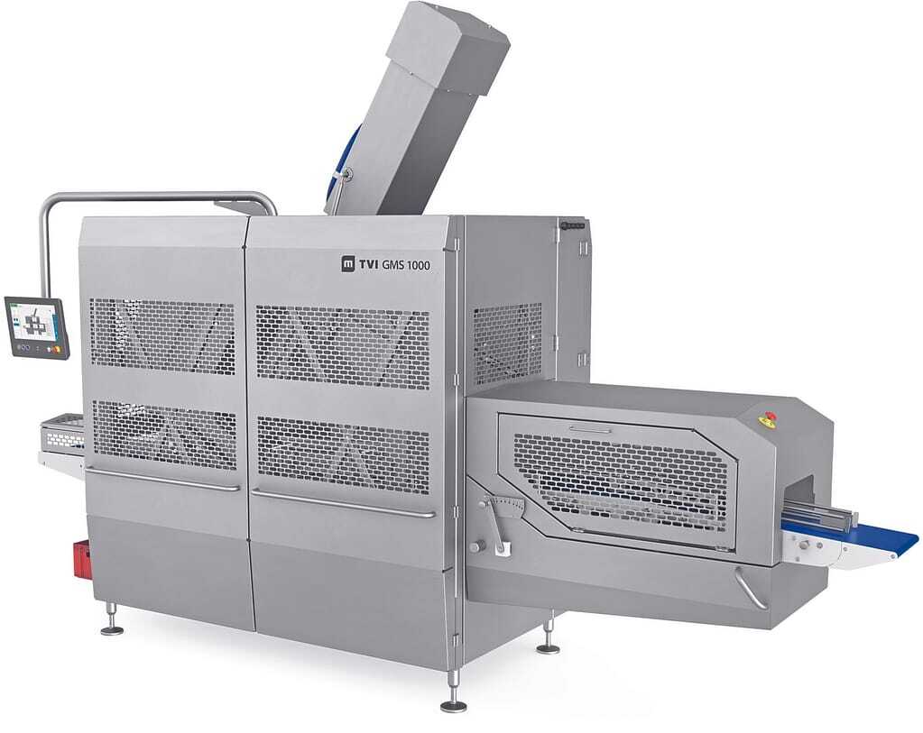TVI, Bruckmühl, gehört seit 2017 zur Multivac Gruppe, Wolfertschwenden. Mit der einspurigen Portioniermaschine GMS 1000 ergänzt das Unternehmen sein Portfolio im mittleren industriellen Segment. Das Portioniersystem erreicht mit seiner 3D-Formung und den hohen Presskräften die bestmögliche Produktausbeute und damit den höchstmöglichen Ertrag. Gleichzeitig bietet die Maschine einen hohen Grad an Flexibilität in der Rohproduktgröße. Die Endprodukte können in Einzelscheiben, Schindelportionen oder Stapel abgelegt werden. Auf Wunsch können die Produkte auch in unterschiedlichen Bereichen unterschiedlich aufgeteilt werden, gewichtsgenau oder resteoptimiert.