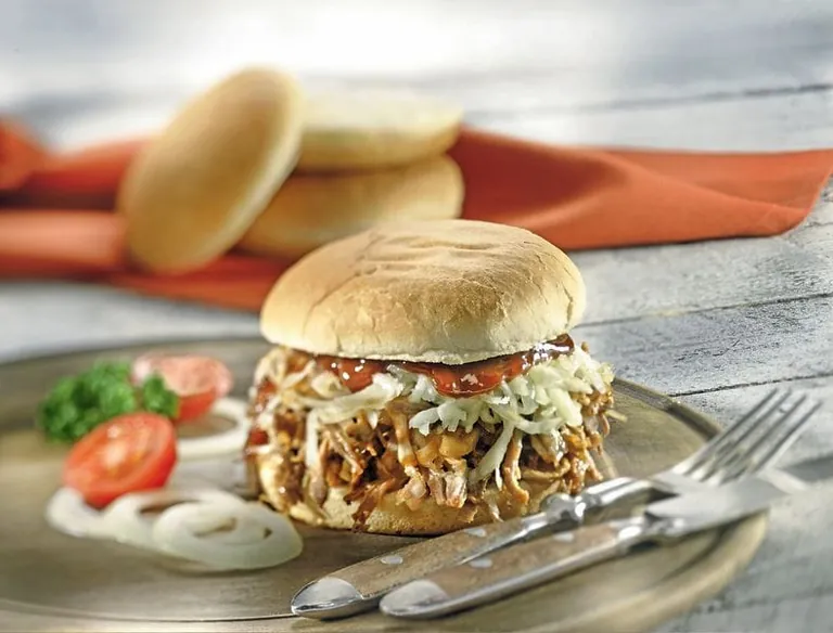 Pulled Pork, der Klassiker des amerikanischen BBQ, ist längst ein Trendgericht in Deutschland. Bei niedrigen Temperaturen zwischen 100 °C und 120 °C und einer Garzeit von etwa vier Stunden pro Kilo Fleisch wird der Schweinenacken zu Pulled Pork – ein Fleisch, so zart, das man es mit der Gabel auseinanderzupfen kann. Wer nicht über Stunden vor dem Smoker in der Kälte warten will, bis das Pulled Pork seine einzigartige Konsistenz erhalten hat, dem empfiehlt Red Arrow, Bremen, seine Raucharomen. Mit wenigen Tropfen erhält das Schweinefleisch das begehrte Raucharoma, während es langsam im Elek­tro­ofen gart.