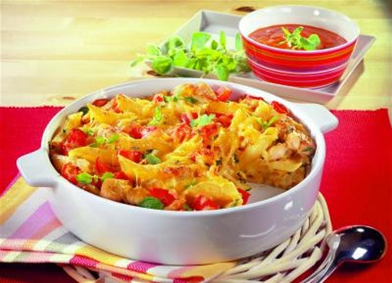 Ein Mittagsgericht mit wertvollen Inhaltsstoffen: Puten-Paprika-Nudelauflauf. - © Deutsche Pute