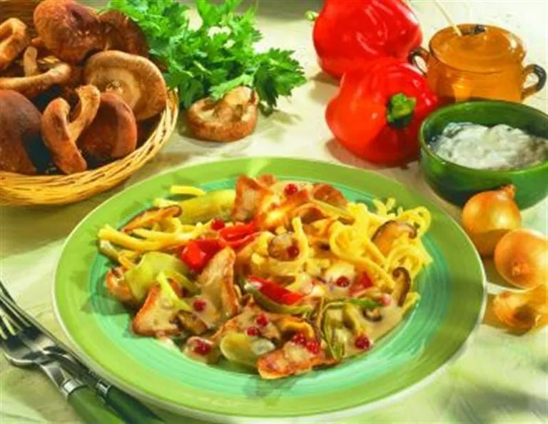 Deftig genießen auf leichte Art können Ihre Kunden mit dem Puten-Pilz-Geschnetzelten. Das Besondere daran: Statt Champignons werden in diesem Rezept Shiitake-Pilze verarbeitet, die insbesondere in der asiatischen Küche Anwendung finden.
