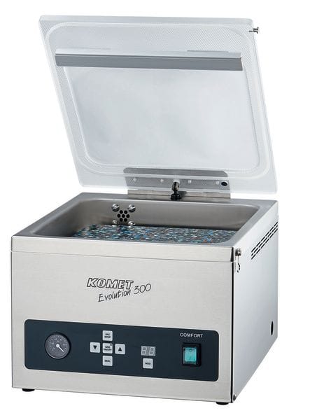 Since 2018 the table top vacuum sealers Evolution 300 Pro and Plus from Ko­met (Plochingen, Germany) have been on the market. Both units are characterised, according to the manufacturer, by an exceptionally rapid vacuum cycle.
