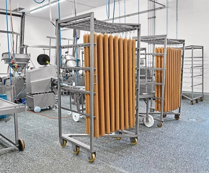 Die Mohn GmbH konstruierte Rauchwagen aus Edelstahl für Meemken Wurstwaren unter anderem für die Herstellung von 1,60 m langen Sucuk-Wurststangen sowie ­Salami. Mohn GmbH