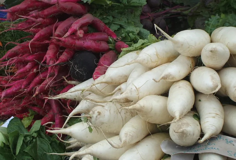 Sommerrettich hat noch bis Anfang Oktober Saison. Qualitätsmerkmale der Wurzeln sind eine glatte Schale, festes Fleisch und saftig-grüne Blätter.