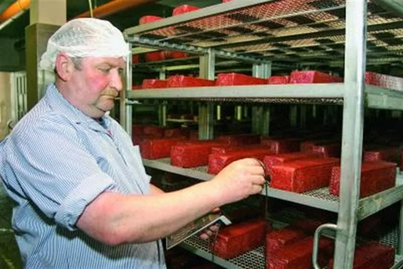 Heute stehen in der Kraftsdorfer Fleischwaren GmbH 16 Mitarbeiter in Lohn und Brot. Monatlich werden 60 t Schweine- und Sauenfleisch verarbeitet. Dirk Müller: „Wir beziehen täglich ausgebeinte und auf ihren pH-Wert überprüfte Teilstücke von den Schlachthöfen Jena, Weimar und Weißenfels. Unsere Salamispezialitäten werden zu jeweils 30 Prozent an Fleischer-Fachgeschäfte, Großhändler und SB-Märkte geliefert. Ein Zehntel des Produktionsvolumens verkaufen wir an Markthändler.“ Künftig möchte der Unternehmer noch mehr Ware direkt an den Einzelhandel vermarkten. Die Spezialitäten können innerhalb einer Woche per Spedition geliefert werden. „Unsere Salami ist mittlerweile weit über Thüringen hinaus bekannt und wird sogar auf Londoner Wochenmärkten angeboten“, berichtet er nicht ohne Stolz.