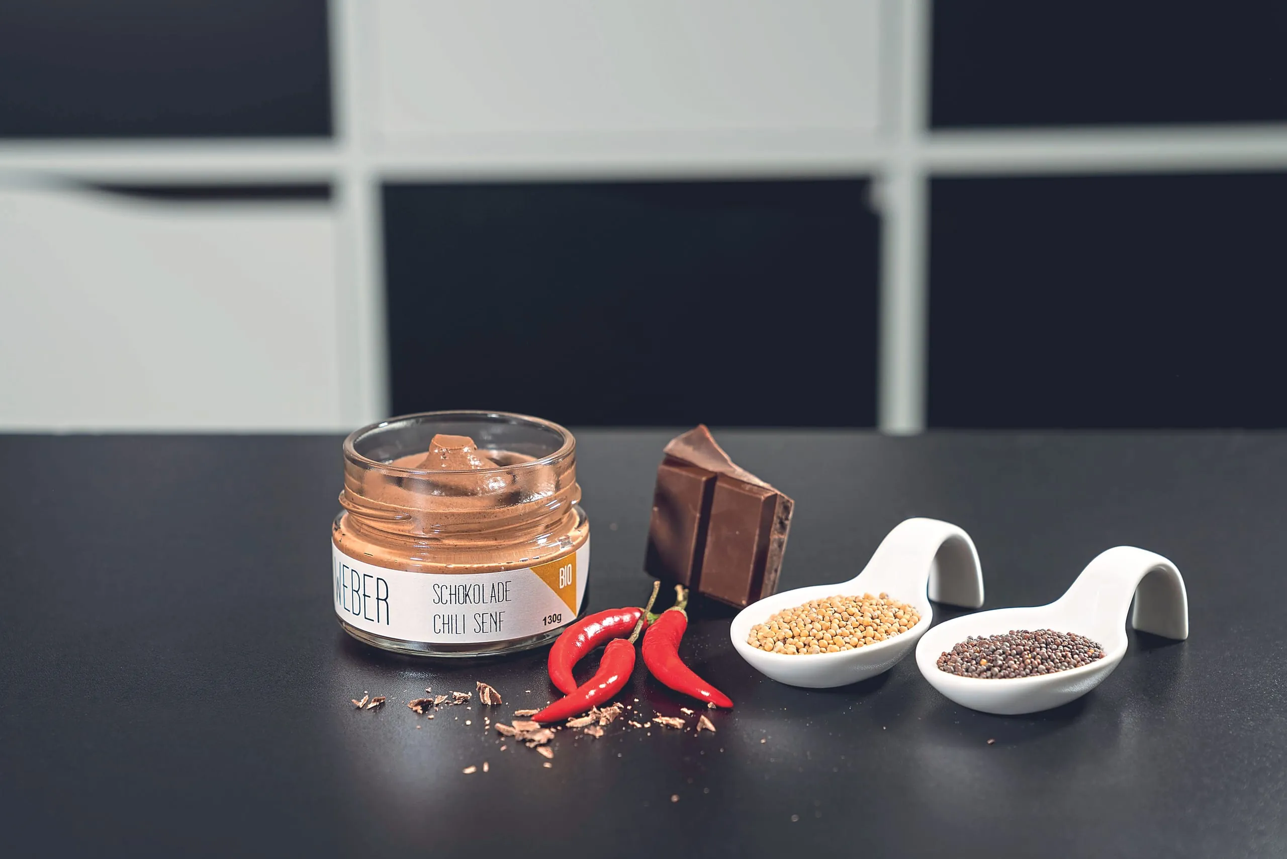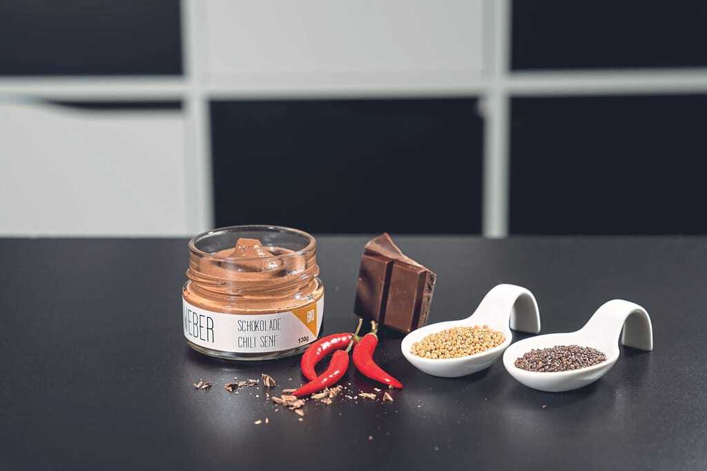 Der persönliche Favorit von Thomas Weber ist der Schoko-Chili-Senf, der besonders gut zu dunklem Fleisch passt. Zur Verfeinerung von Saucen empfiehlt er den würzigen Dijon-Senf. Zu zartem Hühnerfleisch mundet der raffinierte Knoblauch-Senf. Für Bratwürste darf es der herzhaften Bier-Senf sein. Geräuchertes harmoniert mit zarten Meerrettich-Senf.