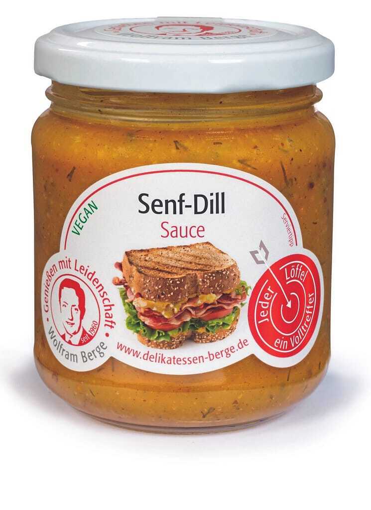 Wolfram Berge, Nümbrecht, hat mit der Senf-Dill-Sauce eine neue mild-­süße Komposition entwickelt. Der ­Geschmacks-Allrounder hat einen Senf-Anteil von mehr als 50 Prozent. Verwendet werden knackig-körniger Senf, aromatische Dillspitzen und Rheinischer Zuckerrübensirup, dessen Herkunft geschützt ist. Die Sauce hat laut Wolfram Berge weniger Zucker als herkömmliche Dill-Senf-Saucen, ist frei von Soja, chemisch-synthetischen Zusätzen, Aroma-, Farb- und Konservierungsstoffen, Geschmacksverstärkern, Verdickungsmitteln und tierischen Produkten. Sie passt zu gegrilltem Fleisch, Fisch und Meeresfrüchten. Auch für gereiften Käse ist sie ein passender Begleiter. Die Senf-Dill-Sauce gibt es im 200-ml- und im 60-ml-Glas.
