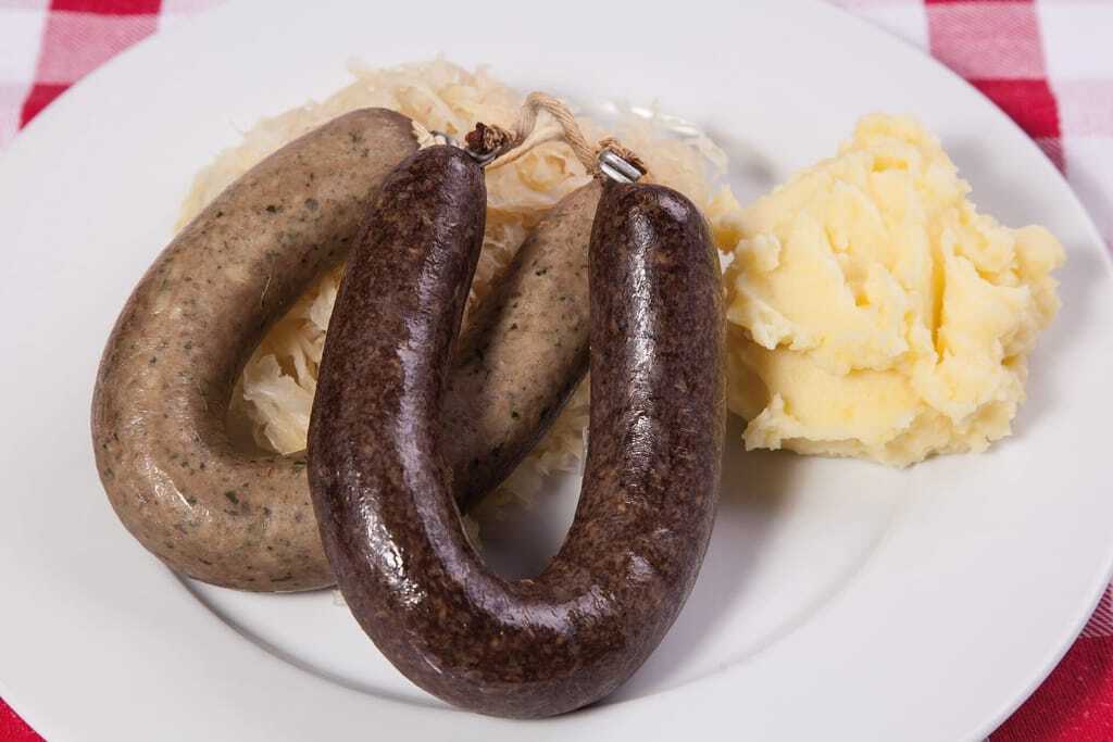 Metzgermeister Manuel Mota von Rack & Rüther findet solche Traditionen gut. Er empfiehlt jetzt zur Herbstzeit eine deftige Schlachtplatte. Im Sortiment von Rack & Rüther gibt es die „Schlachtfest Blutwurst“ und die „Schlachtfest Leberwurst“, beide im Ring. Die Schlachtfest-Würste sind klein und fein – jeweils 140 g. Ideal zum Erhitzen, am besten im Wasserbad – zusammen mit Sauerkraut, Wacholderbeeren, etwas Kümmel und ein paar Lorbeerblättern. Das gibt den typischen Schlachtplattengeschmack, „wie frisch aus dem Kessel“. Aber Vorsicht: langsames Erhitzen ist ratsam, damit die Würste nicht platzen. Zu einer echten hessischen Schlachtplatte gehören noch Wellfleisch und wahlweise Kartoffel- oder Erbsenbrei, Sauerkraut und Graubrot. Dazu trinkt man einen „Schoppen“ – den typischen hessischen Apfelwein.