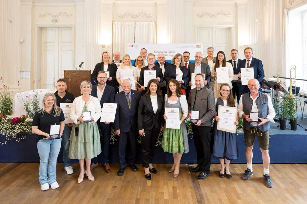 Staatsministerin Michaela Kaniber hat die zehn besten Metzgereien Bayerns mit dem Bayerischen Staatsehrenpreis für das Metzgerhandwerk 2025ausgezeichnet. „Der Preis ist eine Wertschätzung für Ihre hervorragende handwerkliche Leistung. Genauso für Ihr tägliches Engagement, das dahintersteckt. Sie stehen mit Ihren Betrieben für Qualität, Tradition und Innovation. Sie sind Vorbilder für die gesamte Fleischwirtschaft“, so Ministerin Kaniber bei der Preisverleihung im Max-Joseph-Saal der Münchner Residenz.