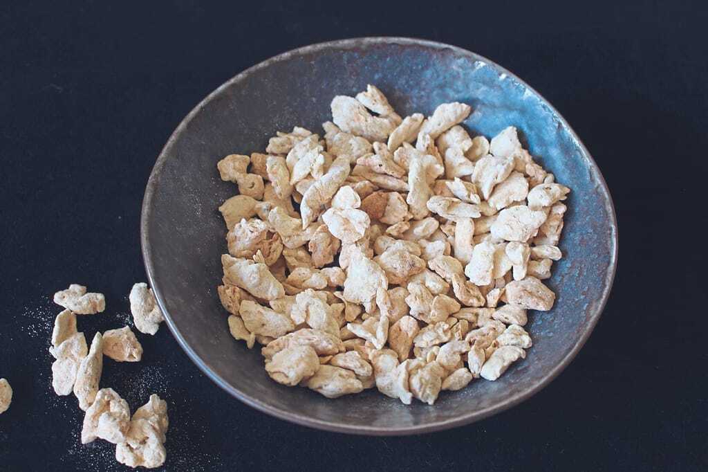 Eiweiß- und ballaststoffreich sind texturierte Sojaprodukte, die nach dem Einweichen wie Fleisch zubereitet werden. In der Kritik stehen sie wegen der aufwendigen industriellen Produktion. Anders Tofu. Der wird hergestellt aus gemahlenen und gewässerten Sojabohnen. Die sich bildende Flüssigkeit wird abgefiltert, erhitzt und mit Nigari oder raffiniertem Magnesiumchlorid versetzt. Dadurch trennen sich flüssige und feste Bestandteile. Letztere werden bis zur gewünschten Konsistenz nachgepresst. Um festen Tofu zu erhalten, gibt man zum Magnesiumchlorid zusätzlich Calciumsulfat. Weicher Tofu (Seidentofu, Sojaquark), eignet sich als Quarkersatz beim Backen oder für die Zubereitung von veganer Mayonnaise. Tofu enthält etwa so viel Protein mit ähnlicher biologischer Wertigkeit wie mittelfettes Fleisch.