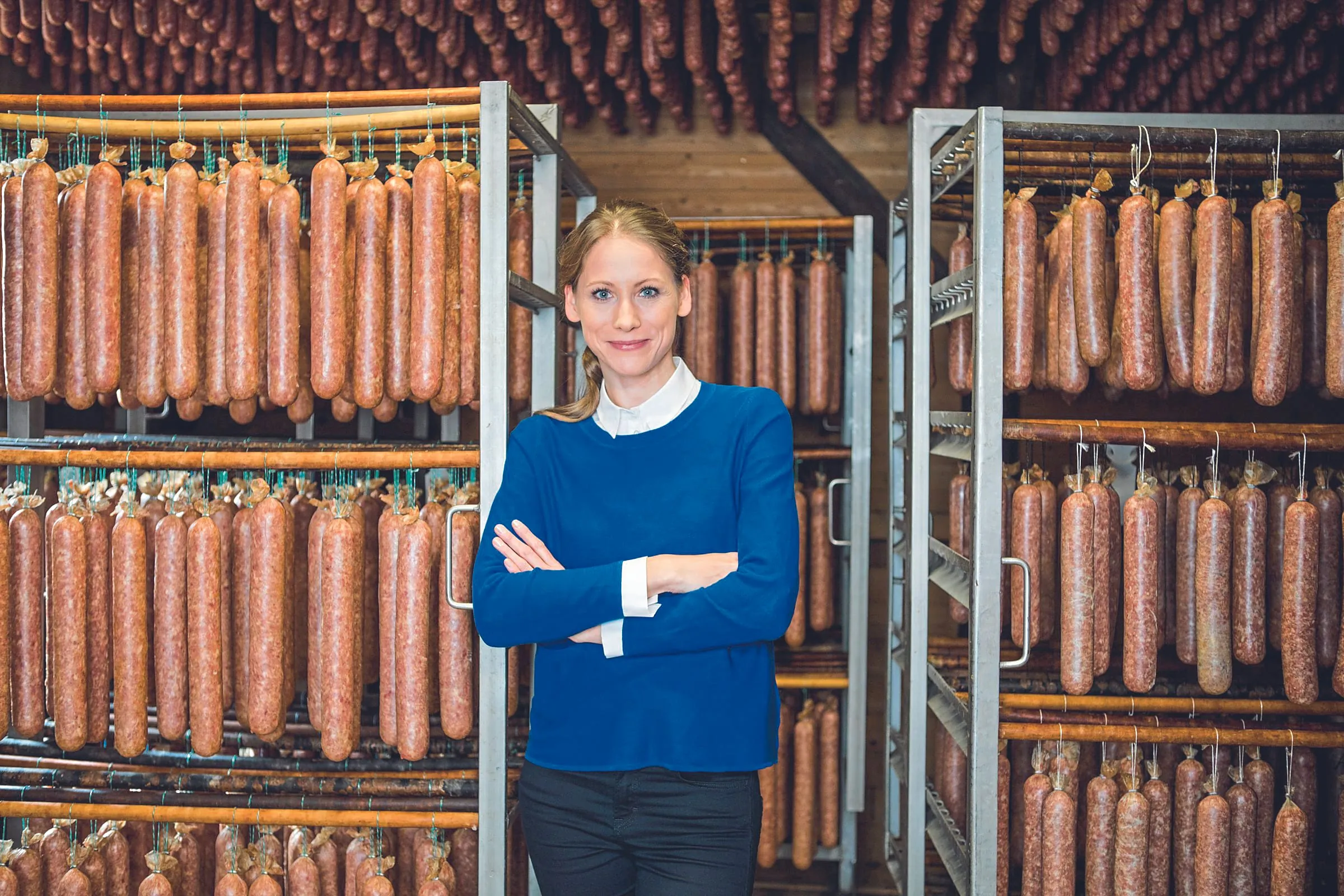 Wie die gelungene Zusammenarbeit von Mensch und Maschine in einer familiengeführten Metzgerei aussehen kann, zeigt das Projekt „Ahle Wurst trifft Künstliche Intelligenz“ der Universität Kassel: Gemeinsam mit der Caldener Landfleischerei Koch wurde ein Verfahren entwickelt, in dem eine KI den Reifeprozess der nordhessischen Spezialität optimiert. Per Sensor werden dabei Informationen über Raumtemperatur, Luftfeuchtigkeit oder den pH-Wert der Würste gesammelt und an einen zentralen Rechner übermittelt. Ein Programm errechnet die notwendigen nächsten Schritte. Anhand dieser Vorgaben kann das Personal entsprechend in den Reifungsprozess eingreifen. Eventuelle Rückmeldungen werden anschließend ins System eingespeist und sofort verarbeitet: Die KI lernt.
