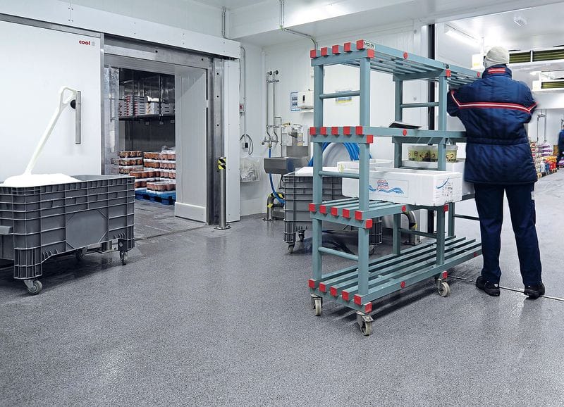 MMA-Beschichtungen sind – auch bei Kälte – schnell verlegt und bieten für Kühl- und Tiefkühlräume fugenlose Sauberkeit. Silikal - © Silikal