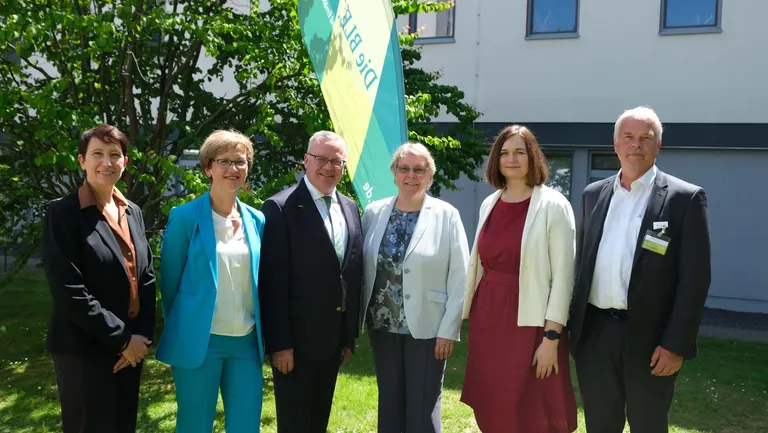 Bei der symbolischen Schlüsselübergabe an Eidens Nachfolgerin, Dr. Margareta Büning-Fesel, gratulierte Staatssekretärin Bender der ersten Präsidentin im BMEL-Geschäftsbereich: „Ich wünsche Ihnen ein gutes Team, eine immer glückliche Hand und freue mich auf die Zusammenarbeit.“ Büning-Fesel ließ anklingen, worauf es ihr künftig ankommt: die Transformation von Landwirtschaft und Ernährung im teamorientierten Arbeiten voranzubringen und dabei Führung aus der Zukunft heraus zu gestalten.