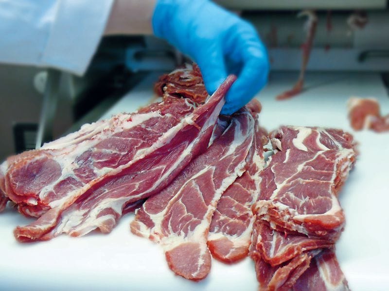 The ESB-SH circular blade cutting machine from Maja (Kehl-Goldscheuer, Germany) can help lucratively automate a wide range of cutting tasks. Manual cutting not only costs time and requires a certain level of precision, but always carries certain safety risks even for experienced staff. It can also be a source of higher contamination levels due to the intensive manual handling. Whether large quantities of schnitzel and steaks must be cut, bacon strips sliced as topping for tarte flambée, or pieces of sausage for currywurst made – the ESB-SH rapidly and easily cuts meat slices and strips of uniform thickness. The pieces to be cut are laid on the feed belt and automatically sent to the circular blade set. Uniform portions of uniform thickness result within seconds.