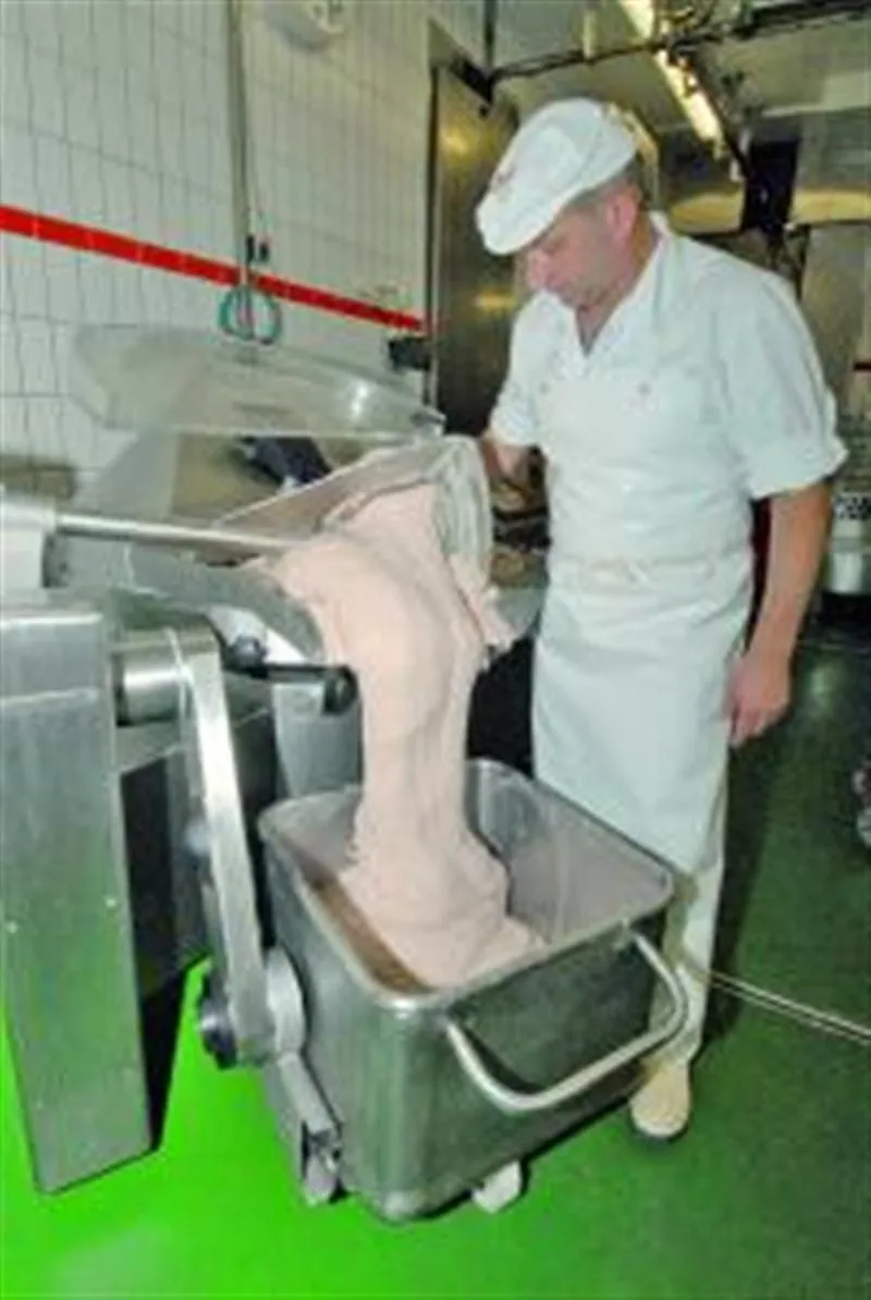 „Unser gesamtes Wurstsortiment – vielleicht mit Ausnahme einiger grober Rohwurstsorten, die direkt aus dem Fleischwolf kommen – fertigen wir in unserem Kutter. Deshalb sind wir auf absolute Zuverlässigkeit angewiesen. Würde unser Kutter ausfallen, könnte ich unsere Leute nach Hause schicken“, weist Linder auf die Bedeutung dieses Produktionsmittels hin.