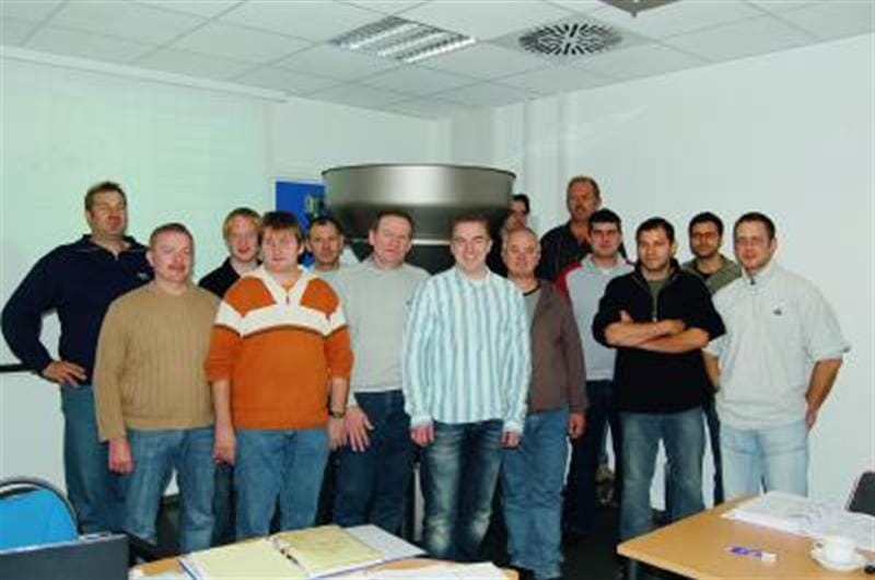 Der neue Schulungsraum von Heifo, Osnabrück, war gerade erst fertig, da fand gleich die erste Veranstaltung statt: Insgesamt 13 Teilnehmer nahmen an der mittlerweile 16. Handtmann-Kundenschulung teil. Mit den Seminaren will Heifo Industriekunden mit eigenem Servicepersonal so weit schulen, dass sie ihre Handtmann-Vakuumfüllmaschinen selbst warten und instandhalten können und somit ein ungestörter Produktionsablauf möglich ist.