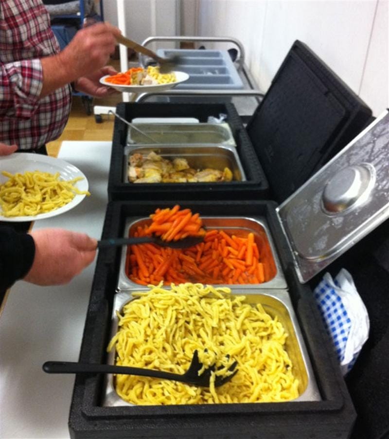 Es ist immer ein logistisches Problem, wenn ein warmes Buffet ausgeliefert werden muss. Wie bleiben die Speisen warm, ohne zu verkochen oder an Geschmack zu verlieren?