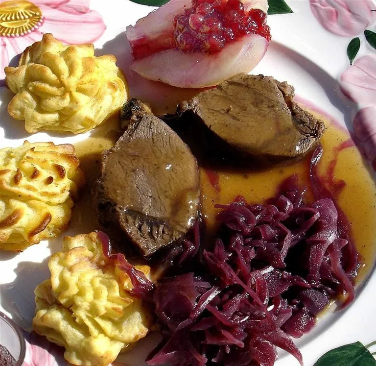 Im Herbst beginnt die Jagdsaison für Damwild und Rehwild und damit traditionell auch die Wildsaison in der Küche. Bestimmte Zutaten und Beilagen, wie Esskastanien, Preiselbeeren oder Rotkohl, dürfen dann im Zusatzsortiment von Fleischer-Fachgeschäften nicht fehlen.