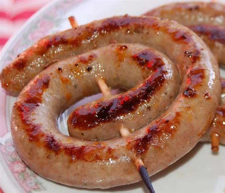 Denken Sie daran, die Spieße zuerst in Wasser einzuweichen und eventuell noch mit Öl zu bepinseln, dann gehen die Würstchen ganz leicht wieder von dem Spieß herunter, ohne zu zerbrechen, und die Spieße selber werden auf dem Grill nicht so schwarz.