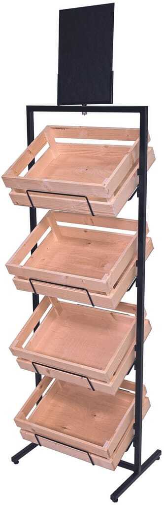 Statt wie bisher mit vier Weidenkörben ausgestattet, ist Olli mit vier Fichtenholzkisten (400 × 300 mm, Höhe 120 mm) ausgestattet. Durch die leichte Schrägstellung der Holzkisten ist die Ware gut sichtbar und leicht entnehmbar. Die Werbewirksamkeit wird durch das austauschbare Schild verstärkt. Die stabile und leichte Metallkonstruktion in der Farbe anthrazit hat insgesamt eine Breite von 460 Millimeter, eine Tiefe von 360 Millimeter und ist inklusive Werbeschild 1.620 Millimeter hoch.